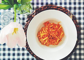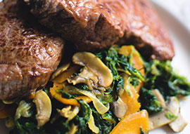 Egg Beaters scrambled with slow-roasted tomatoes, onion, fresh spinach and mushrooms.